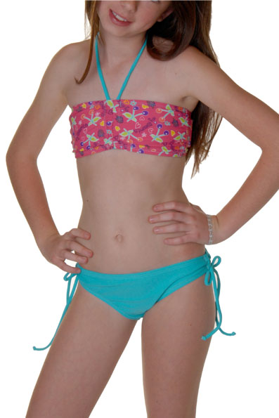 Bikini infantil aqua, top estampado